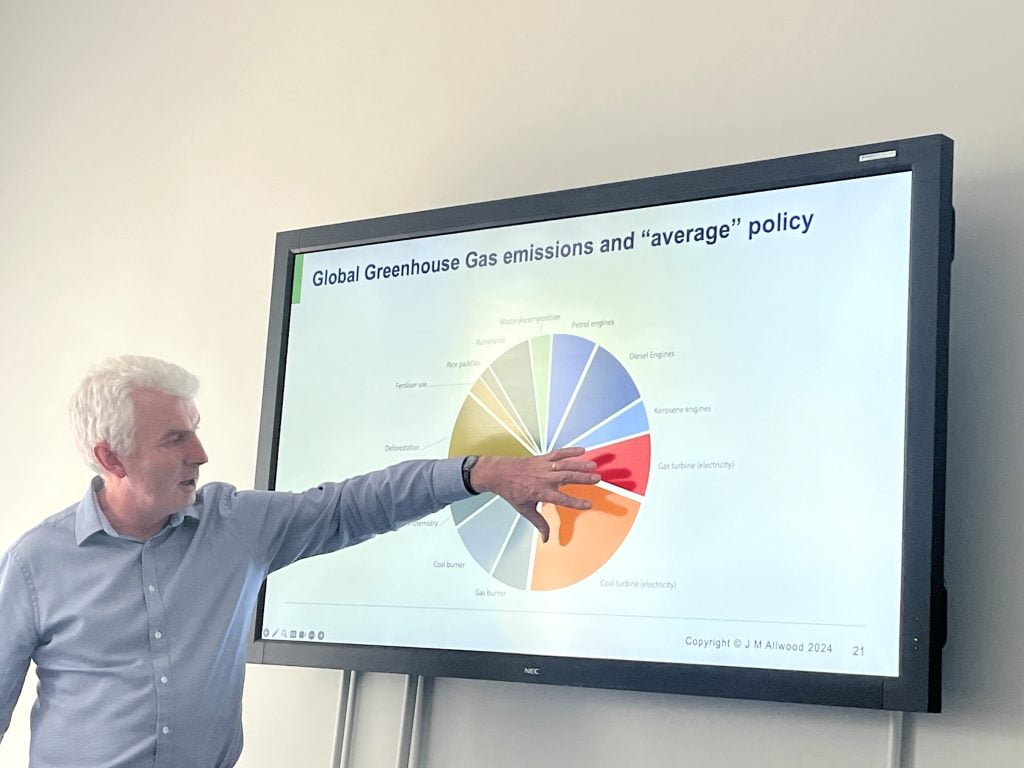 The main event of the day was Julian’s public talk on “Our Precious Resources” delivered in the SECA rooms in historic University Square. The attendees heard how reducing demand on material is a critical element in our path to net zero. Julian explained how, to date, most political efforts around climate mitigation have focused on novel supply-side technologies, in particular carbon capture and storage, hydrogen and negative emissions technologies. However, they are deploying so slowly, that we can now say with near certainty that they won’t have meaningful scale by 2050. He explained how the opportunities for profitable demand-side innovation that can be deployed rapidly. The talk will start with two examples of spin-out companies created in my group: DeepForm Ltd which delivers drop-in-tooling to reduce the scrap made by the automotive industry by 75%, and Cambridge Electric Cement Ltd. which offers the world’s first true zero-emissions Portland Cement. In both cases, they identified the opportunity for the innovation by pragmatic top-down analysis of options at scale, which allowed them to focus their creativity. He gave more clarity to the under-explored opportunities for demand-side innovations that can contribute significantly to climate mitigation within the time left for safe action. A captivating and informative talk!