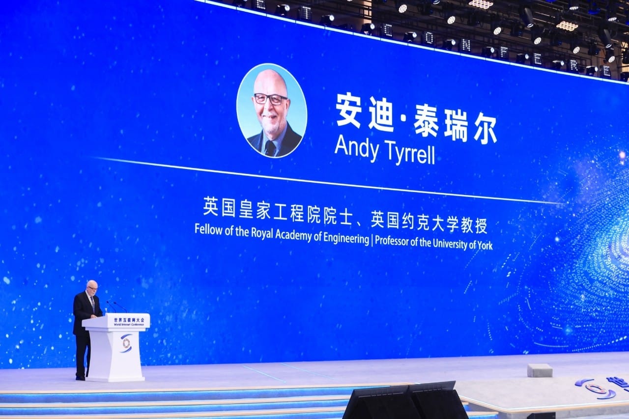 Professor Andy Tyrrell gave an invited Keynote talk in Wuzhen China, on the 8th November, at the ‘AI-Driven Integrated Advancements in Technological and Industrial Innovation’ Forum, to an audience of around 1500. His talk ‘How AI Innovation is Driving Breakthrough in Engineering design for Commercial Applications using Biologically-Inspired Intelligence’, discussed how the EvoDevo techniques developed in RIED can provide an alternative from conventional AI to innovate in engineering design.